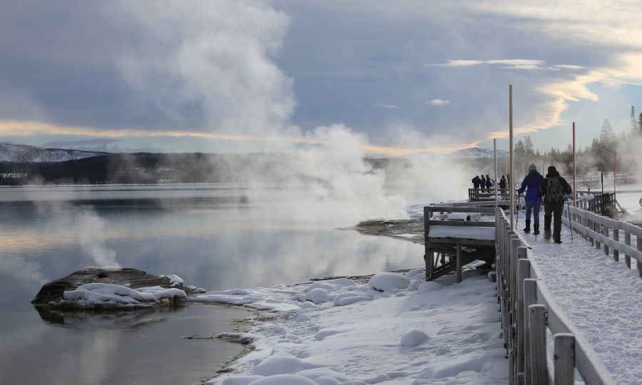 This fun-filled afternoon excursion travels south from Snow Lodge and continues to West Thumb Geyser Basin, the largest geyser basin on the shore of Yellowstone Lake. Traversing Craig Pass, we’ll cross the Continental Divide into, and then back out of, Pacific Ocean drainage on our way to Yellowstone Lake, where we’ll walk around the West Thumb Geyser Basin, taking in such notable features as Abyss Pool, Black Pool, the Fishing Cone, and Lakeshore Geyser. For a fun afternoon, come lope over to West Thumb with us!