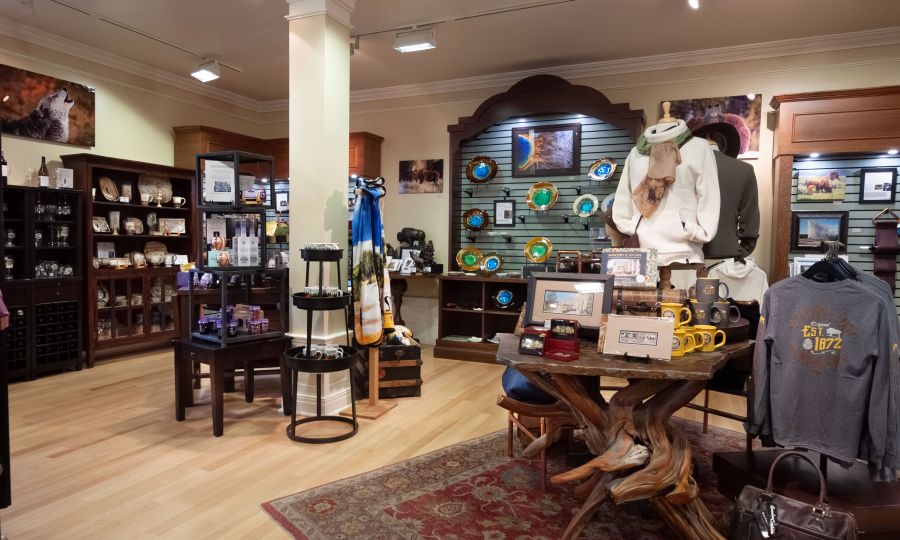 Located right off the beautiful sun room in Lake Yellowstone Hotel, the gift shop reflects the hotel’s 1920s décor and grandeur, while still providing a wide range of items to help make your stay more enjoyable. At Lake Yellowstone Hotel, we’ve themed the store through the inspiration of Yellowstone’s waters. Not only does this store carry a fine selection of fashion apparel, accessories and souvenir apparel, but it also features a wide array of collectibles, carvings and distinctive regional products that capture the lake lifestyle. You can also find Inspired by Yellowstone artists in the lobby throughout the summer.